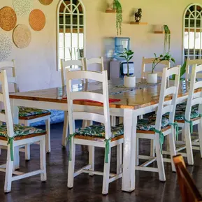 It is the perfect venue for family gatherings and also a holiday away from the hustle and bustle of city life. It's location is great for an overnight stop before crossing into South Africa, or on your way back home. Kuduland has six air-conditioned chalets, sleeping two people in each and on the other side it has five borrocs with fans, sleeping four people in each. Each side has their own pool with glorious views of the river. Meals are served in our lapa or under the Nyala tree.